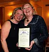 Ellen Petrine Fretheim (t.v.) gratulerer Kjersti Godøy med æresmedlemskapet.