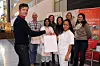 Her delte de ut godbiter og gaveposer til sykehusets renholdere, som teller 140 årsverk. En av dem som ble feiret i dag var Edna Andresen (foran på bildet øverst).