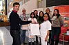 Hanne Rud, Irene Solmark og Trine Bergh, med smil og sjokolade til renholderne.