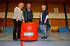 I gymsalen i Nykroppa har de et åpent utstyrslager. Der har de rett og slett satt opp en sperrebånd. Ved benkene langs veggen har de satt opp noen madrasser. Det er alt som skal til for at roboten fungerer optimalt.