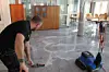 Lundmark forteller at noe av hemmeligheten bak det gode resultatet av marmorbehandlingen, ligger i produktet de benytter seg av. Før selve gulvbehandlingen, fjerner de riper ved hjelp av diamantpads.