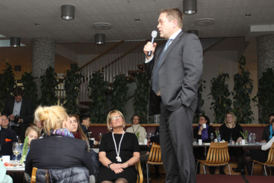 Martin Holmen, styreleder i NHO Service og administrerende direktør i Securitas, sammenligner Anne Jensen med dansen boogie-woogie. (Foto: Even Rise)