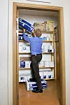 I Europa håndteres store mengder renholdsrelaterte produkter hver dag. På bildet er Vibe renhold brukt som eksempel for Tork Easy Handling, som ble utviklet etter observasjon av brukerne. Foto: SCA