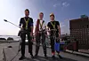 Klatrerne trives godt med å få rengjøre i høyden. Martin Olslund (i midten) har klatret i ti år og er et av landets yngre klatrerhåp. Joar Nedberg (til venstre) og Steffen Siljan Slåtta har klatret i 3-4 år før de begynte i Høyden. Foto: Helle Hynne