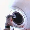 Vindu 2 er mer et lite koøye enn et vindu, men var uansett blitt til­smusset og får her en omgang med spesial­utviklet utstyr. (Foto: NASA TV)