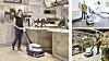 Maskinen kan både feie, vaske og tørke i samme operasjon, og beveges forover og bakover. Den kan ta opp større avfalls­biter uten at du må stoppe først.
