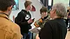 Ann Britt Olsen (til høyre) sammen med noen ungdommer som er interessert i mer informasjon om renholdsoperatør faget