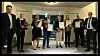 Diplomene er delt ut og vises stolt fram. Fra venstre: Kurt Jørgen Nilsen (NVK), Liva Fløan (Midtre Namdal Vekst avd. Flatanger Vaskeri), Tine Vatn (Sarpsborg kommune), Markus Holgersen (Nor Tekstil avd. Skien), Birgith Hjelle Roset (Mona Vekst), Grethe Celius (Hadsel ASVO), Kay Halvor Berg (Sentral­vaskeriet i Akershus) og Jan Tore H. Gunnarsen (NVK).
