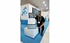 Mark Coady forklarer hvordan smarthus­firmaet InfoGrid snakker med roboten Whiz. Her under messen Interclean Amsterdam 2022.