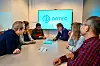 – Den største utfordringen vår er å støtte organisasjonen i endrings­ledelse, ikke det tekniske, sier Jørgen Sannes­moen (med hånda på nettbrett). Fra venstre salgs­sjef Jonas Forså, markeds­konsulent Randa Bakken og utvikler Muhammed Zubair.