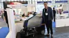 Allen Zhang fra Gaussian Robotics med Ecobot Scrub 75. 75-eren er ganske forskjellig fra Scrub 50, kunne ses under Interclean i Amsterdam 2018, og er beregnet for litt større områder. (Foto: Trond Erik Hillestad)