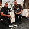 Torgeir Mork og Tore Vestad fra Renholds­soner viser nye ftalat­frie belegg.