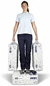 Under utviklinger ble bleiepakker brukt som inspirasjon: Komprimerte forpakninger med holdbare håndtak, som gjør det mulig å bære én i hver hånd.
